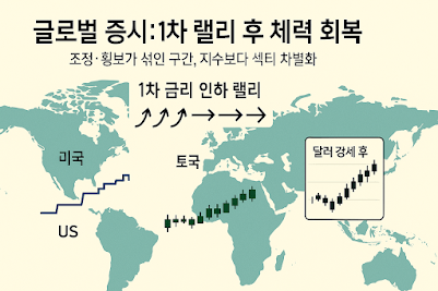 – 미국은 이미 **두 차례 금리 인하**, 글로벌 증시는 **1차 랠리 이후 조정·횡보 혼합 구간**.