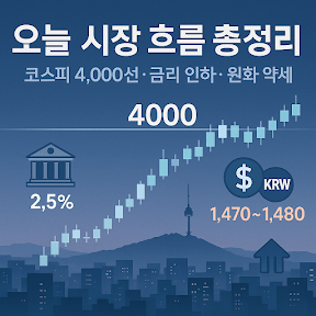 – 코스피는 **4,000선 부근 박스권 소화 구간**, 단기 반등 피로도 같이 나타나는 중.