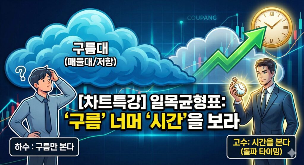 - ⛈️ 구름이 두꺼우면? (지금 쿠팡): 콘크리트 벽이야. 한 번에 못 뚫어. 횡보하면서 매물을 소화하거나, 구름이 얇아지는 ‘변곡점’을 기다려야 해.