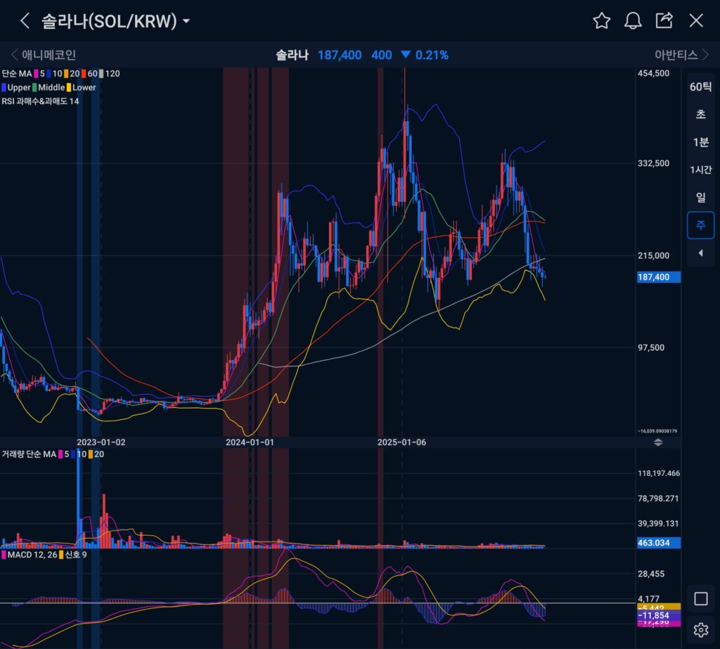 (참고 – 업비트 솔라나 주봉챠트 캡쳐)