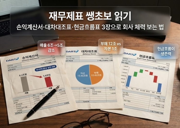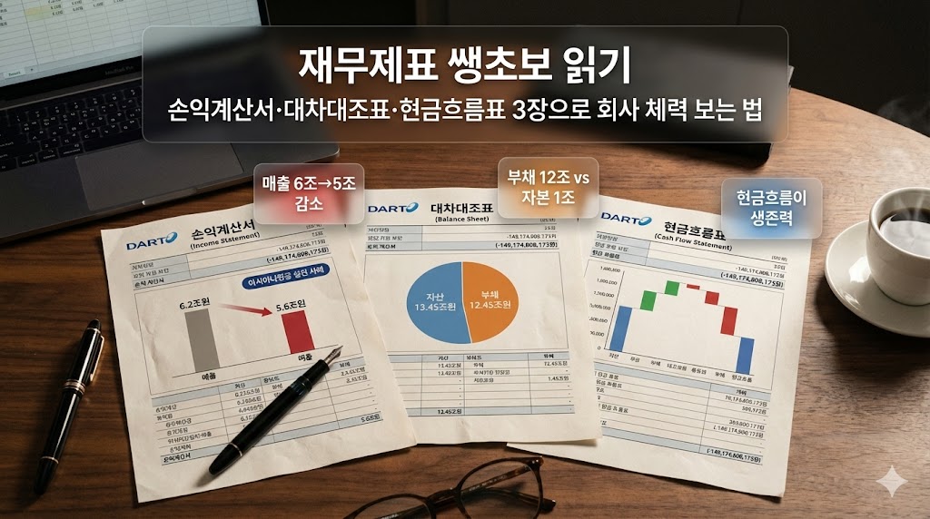 재무제표는 “회사 가계부”야. 아시아나항공 사례를 보면, 뉴스나 차트 보기 전에 최소한 손익계산서·대차대조표·현금흐름표 세 장에서 몇 가지만 확인하면 회사 상태를 대략 짐작할 수 있어.