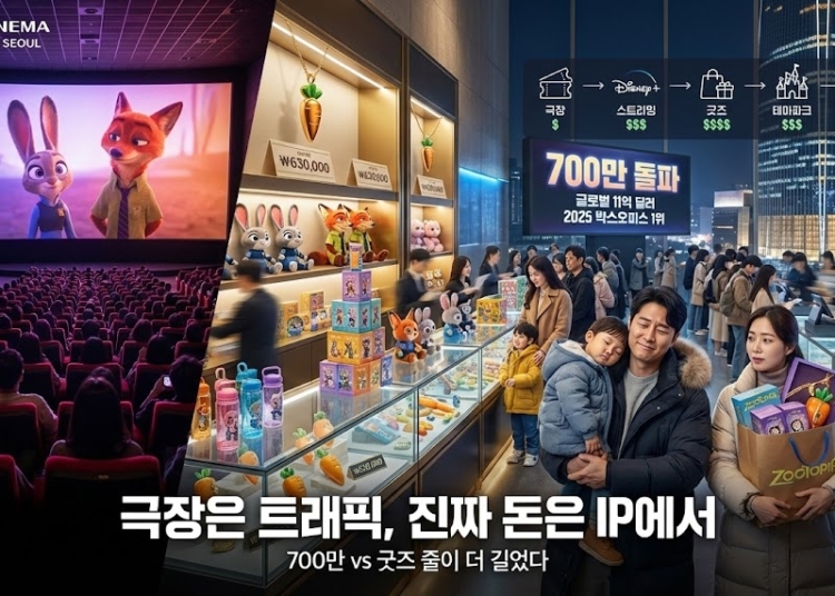 표값보다 중요한 건 엔드 크레딧 이후에도 계속 캐시플로를 뽑아내는 캐릭터를 가진 쪽이야. 디즈니는 이미 주토피아2 캐릭터를 스트리밍, 게임, 테마파크, 주얼리까지 확장하면서 장기 수익 구조를 만들고 있어.