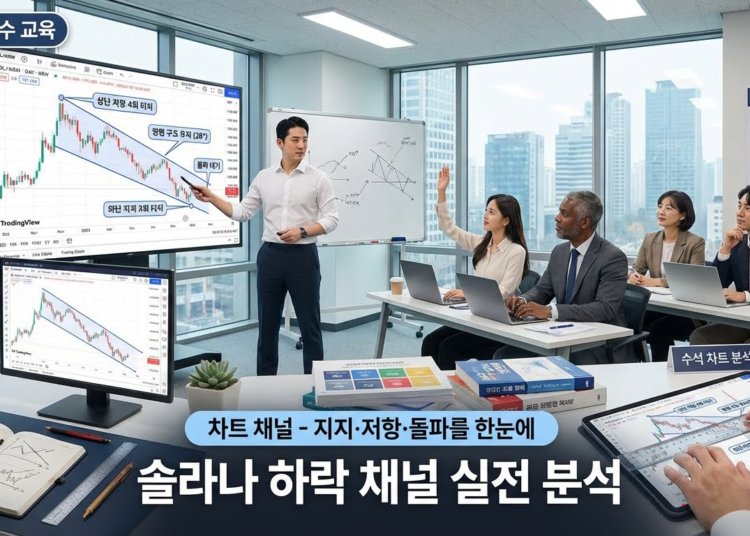 채널은 차트 분석에서 제일 실용적인 도구 중 하나야. 복잡한 지표 없이도 “어디서 되밀릴지, 어디서 튈지, 언제 추세가 바뀔지”를 시각적으로 한눈에 파악할 수 있거든. 특히 솔라나처럼 하락 채널 안에서 왔다 갔다 하는 장세에선, 채널 상단 근처에서 숏·채널 하단 근처에서 롱 전략이 먹히는 경우가 많아.