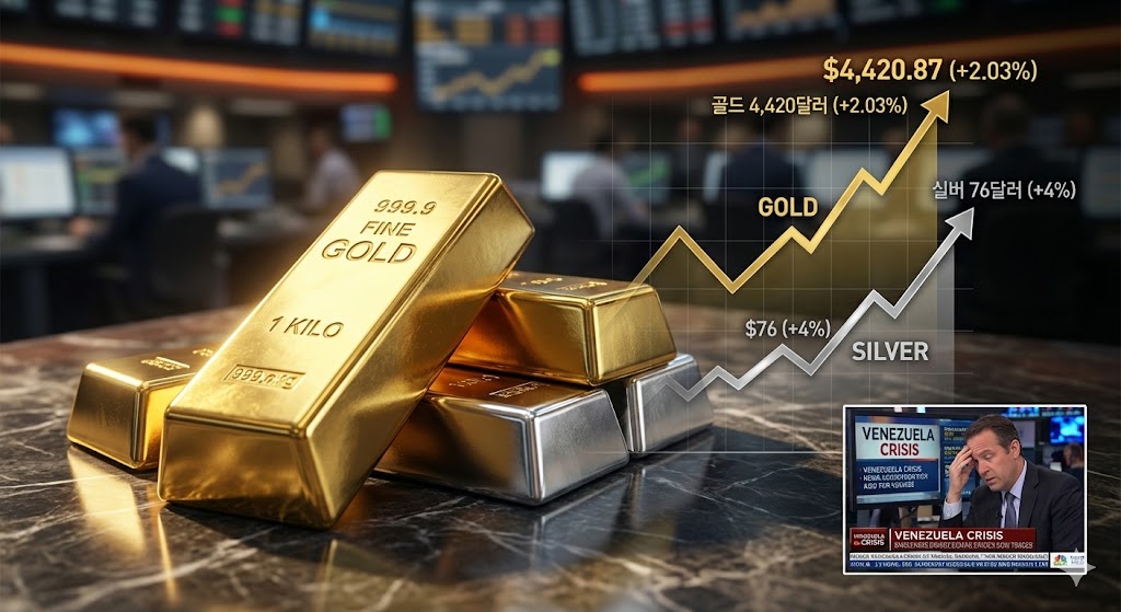 한 줄로 정리하면, “베네수엘라 쇼크 → 유가는 잠잠, 골드·실버는 폭등, 한국·일본 증시는 사상 최고가 경신. 안전자산과 위험자산이 동시에 강세를 보인 이례적 밤”이었다. 당분간 이 흐름은 지속될 가능성이 크다.