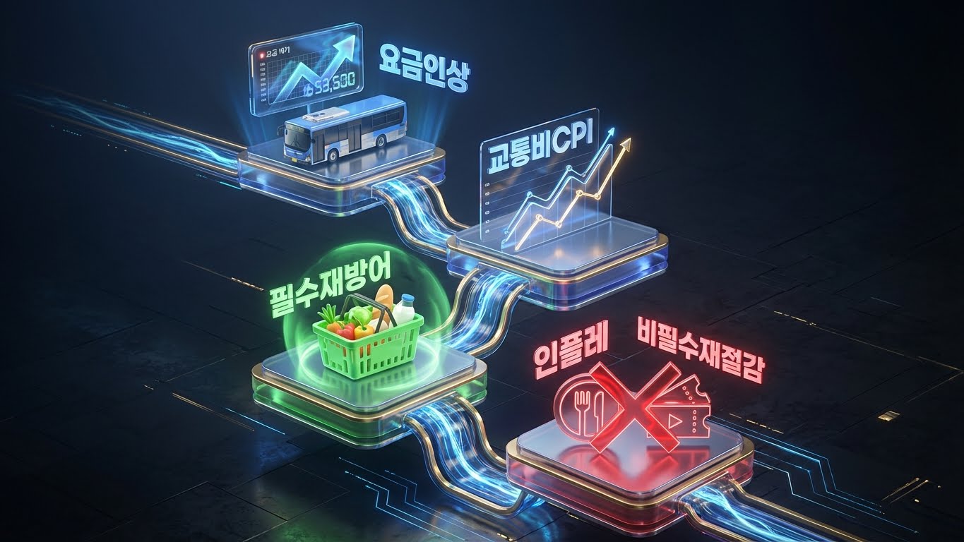 요금 인상 → 교통비 CPI ↑ → 인플레 압력 → 필수재 방어·비필수 타격