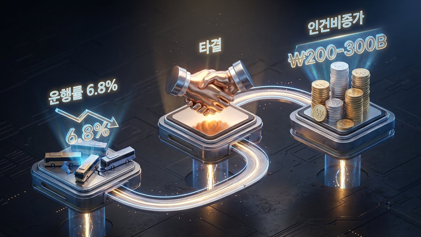서울 버스 파업은 이틀 만에 끝났지만, 진짜 게임은 지금부터다. 연간 2천억~3천억 원대로 추정되는 인건비 증가는 요금 인상 없이는 감당할 수 없는 규모고, 요금 인상을 하면 서민 부담이 커지며 소비 위축으로 이어진다. 재정으로 흡수하면 지방채·국채 부담이 커지고, SOC 예산 확대 논의가 열린다.