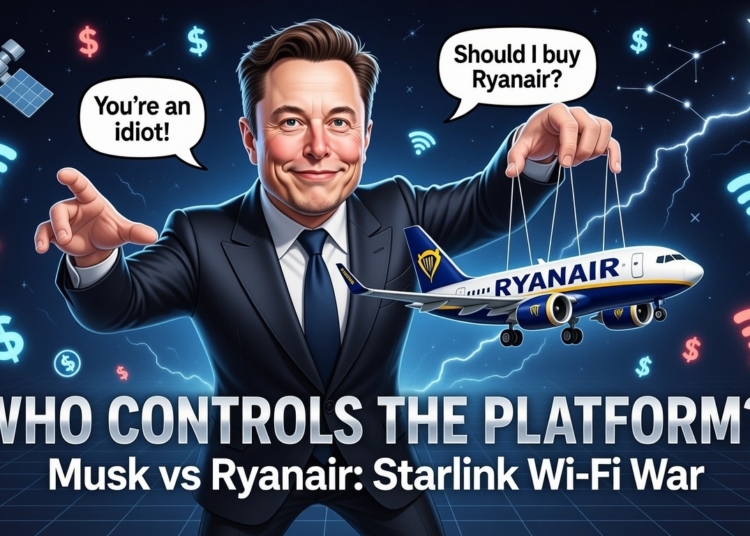 In mid-January 2026, a public spat erupted between Elon Musk and Ryanair CEO Michael O’Leary over Starlink in-flight Wi-Fi. O’Leary dismissed the technology, citing a 2% fuel penalty and $200-250M annual cost increase, while Musk countered that the actual drag is closer to 0.3% with newer flat-panel antennas. The dispute escalated when Ryanair’s X account mocked Musk during a platform outage with “perhaps you need Wi-Fi,” prompting Musk to call O’Leary an “utter idiot” and joke about buying Ryanair to install “someone whose actual name is Ryan” as CEO.