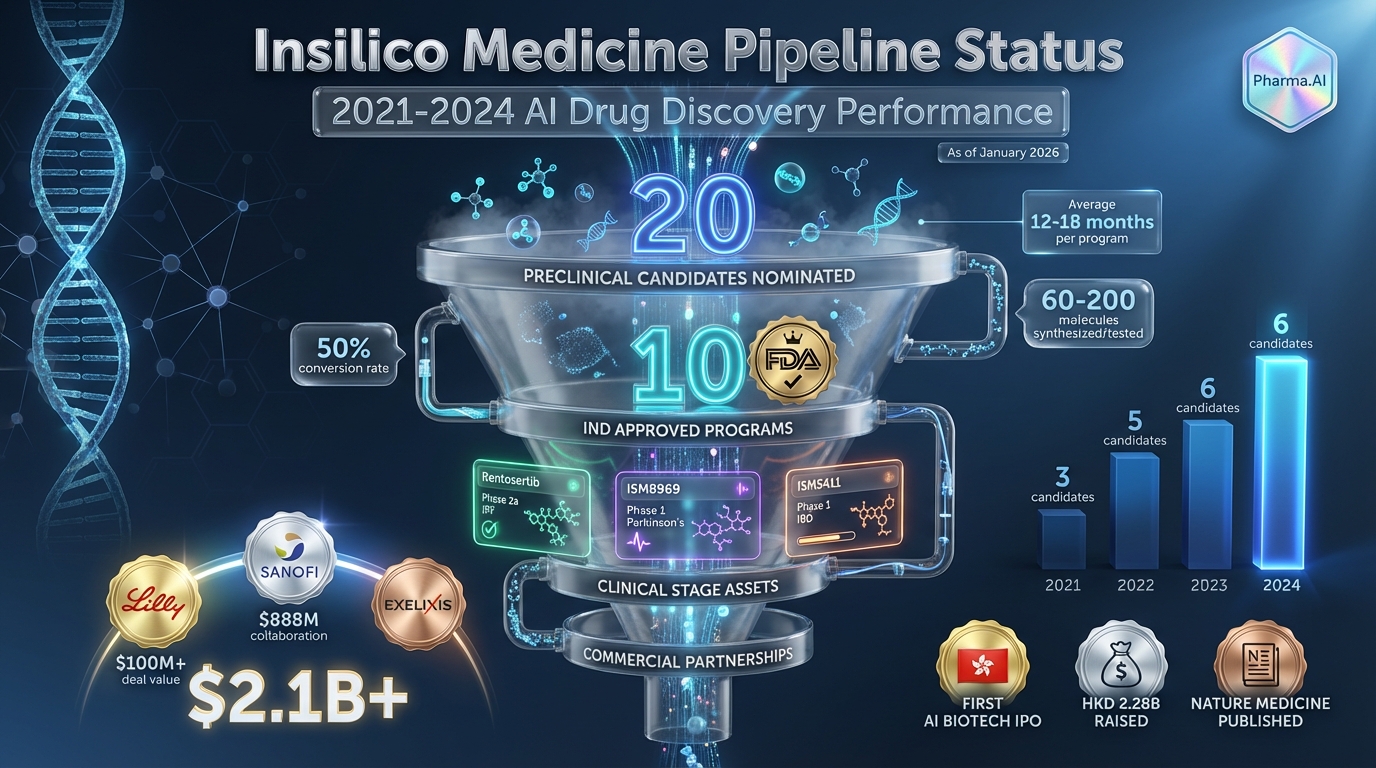 On December 30, 2025, Insilico Medicine became the first AI-driven biotech to list on the Hong Kong Stock Exchange Main Board, raising HKD 2.277 billion (~USD 293 million) in the largest biotech IPO of the year. The offering was oversubscribed 1,427 times, and shares surged 45% on debut. What makes this IPO significant is not just the capital raised, but the validation of AI-powered drug discovery with real-world results. Using its Pharma.AI platform, Insilico nominated 20 preclinical candidates between 2021-2024, with an average timeline of 12-18 months per program—compared to the traditional 4.5 years. The company now has 10 IND-approved programs and has completed Phase 2a trials for its lead asset rentosertib (polmonary fibrosis) with positive results published in Nature Medicine. 💊