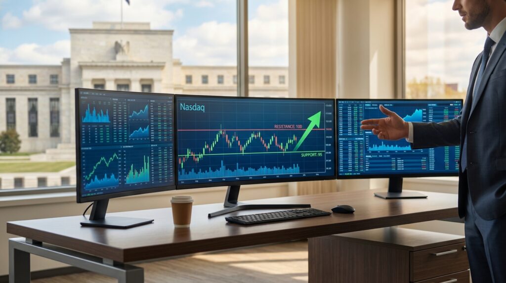 🔹 Nasdaq’s Post-Warsh Reaction: Trend Intact Despite Box Range Correction